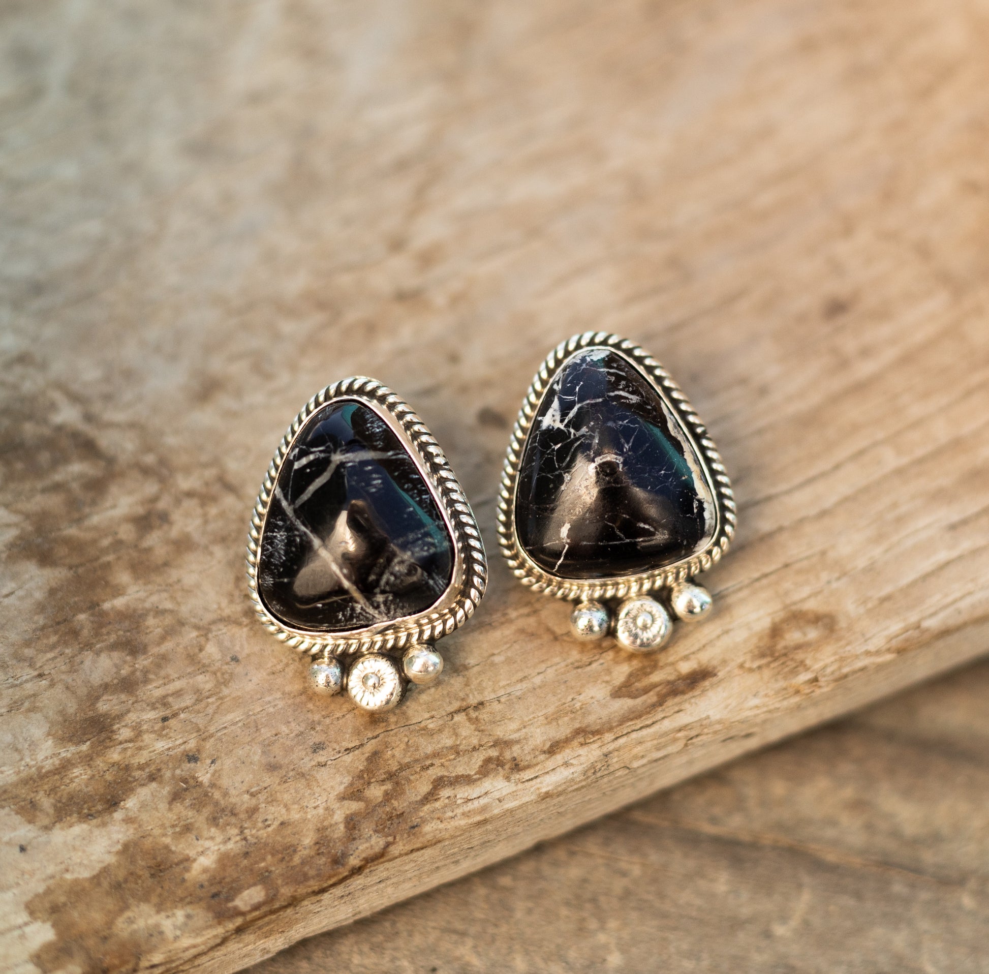 Heavy black matrix white buffalo handmade by Navajo silversmith, stamped. Beautiful stone! All sterling silver.
